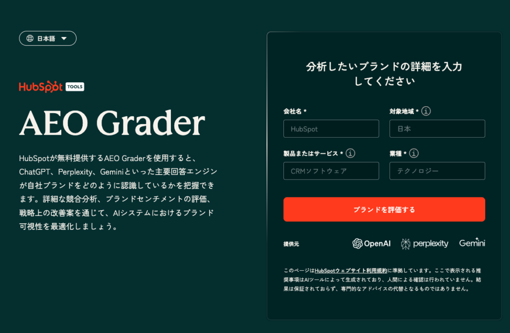 1. HubSpot AEO Grader【完全無料・初心者向け】