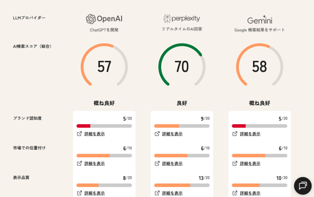 | 対応AI | ChatGPT(GPT-4o)、Perplexity、Gemini |