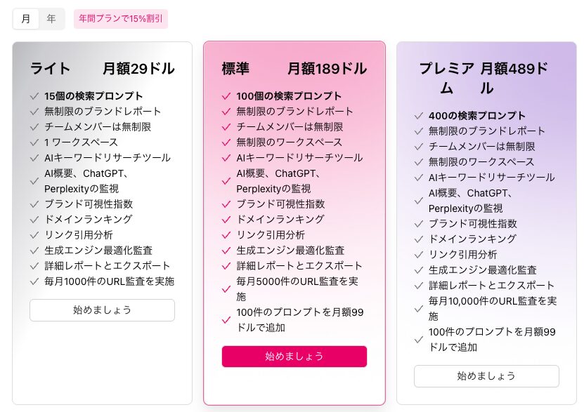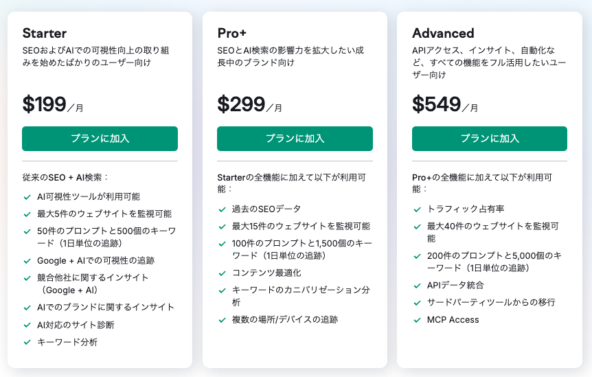 | 対応AI | Google AI Overviews、ChatGPT、Perplexity |