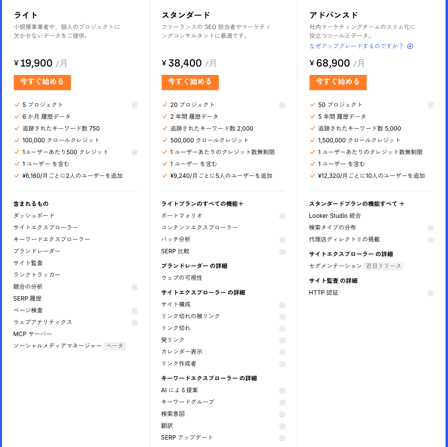 | 競合分析が可能 | 週次・月次の自動レポートなし |