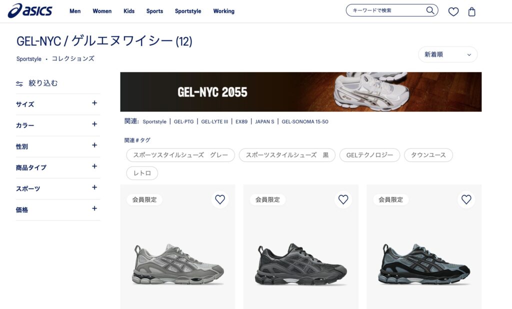 スポーツスタイルは、2000年代のアーカイブをベースにした「VINTAGE TECH」シリーズや、「GEL-QUANTUM」「GEL-NYC」といった、機能とファッションを掛け合わせたモデルが好調です。