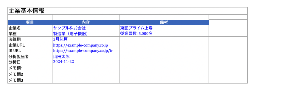 | 実践ステップ | 情報収集→エクセル作成→業界比較→定期モニタリング→アクション化 | 今週中に分析用エクセルを作成する |