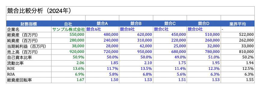 - [ ] 自社と競合の財務指標を比較表にまとめる