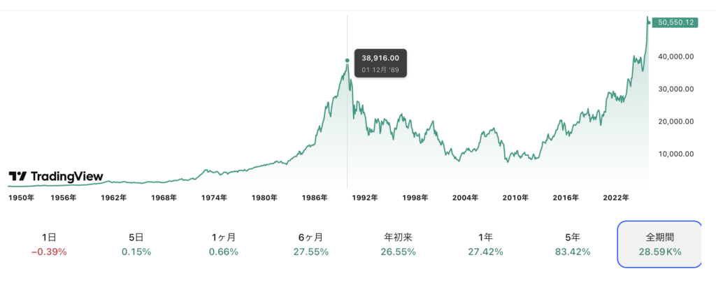 株価史上最高値から半値以下に急落1989年12月:38,915円 → 1992年8月:14,000円台