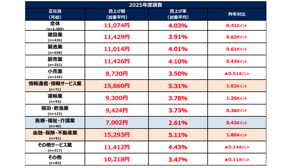 その他サービス業の賃上げ率は4.43%と、比較的高い水準です。