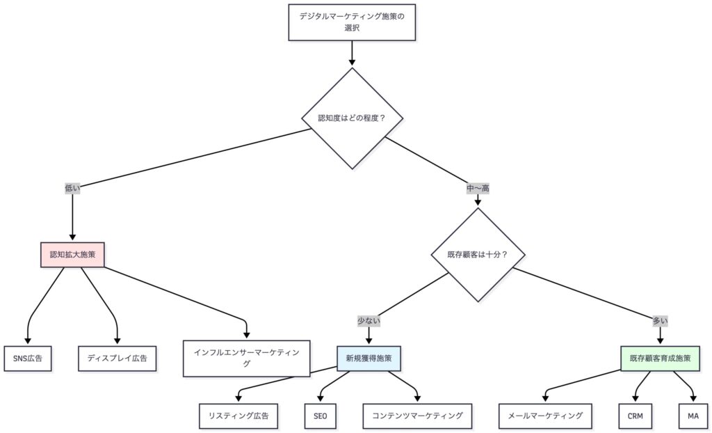 | 施策は組み合わせ | 単一施策ではなく、複数のチャネルを組み合わせることで相乗効果が生まれる | 現在実施している施策をリストアップし、足りないチャネルを特定 |