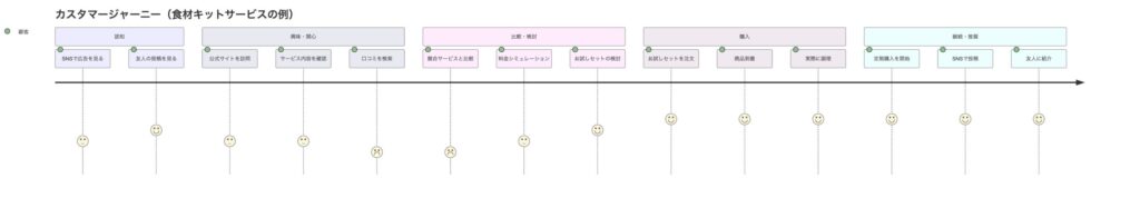 | カスタマージャーニーマップを作成している | ◯(3点) | △(2点) | ×(0点) | ||