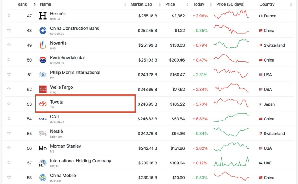 一方で、日本企業で最も順位が高いトヨタは現在53位と50位以内にも入れていません。この現実は、単に一時的な市場変動ではなく、構造的な競争力の差を示していると考えられます。