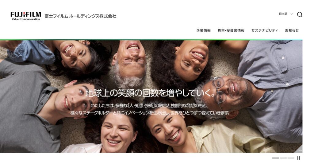 ヘルスケアでは医療用画像診断機器(内視鏡、X線、超音波)、バイオ医薬品の受託製造(バイオCDMO)、培地などのライフサイエンス製品を提供。エレクトロニクスでは半導体製造に不可欠なCMPスラリーや、データストレージテープなどの電子材料を製造。ビジネスイノベーションではオフィス向け複合機やデジタルサービス、印刷関連事業を手掛け、イメージングではインスタントカメラ「instax」やミラーレスカメラ「X/GFXシリーズ」などのコンシューマー製品を展開しています。