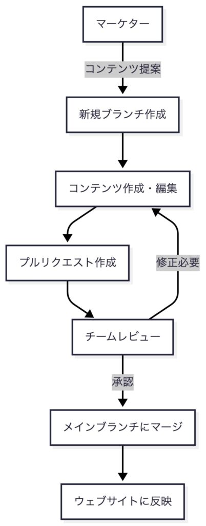| コンテンツの承認プロセスが不明確 | プルリクエストによるレビュー体制の構築 | 公開前のエラー減少、品質向上 |