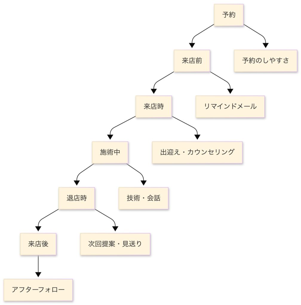 | 1. 依頼 | 「口コミ投稿で次回500円OFF」 | 施術直後 | 投稿率30→60%向上 |