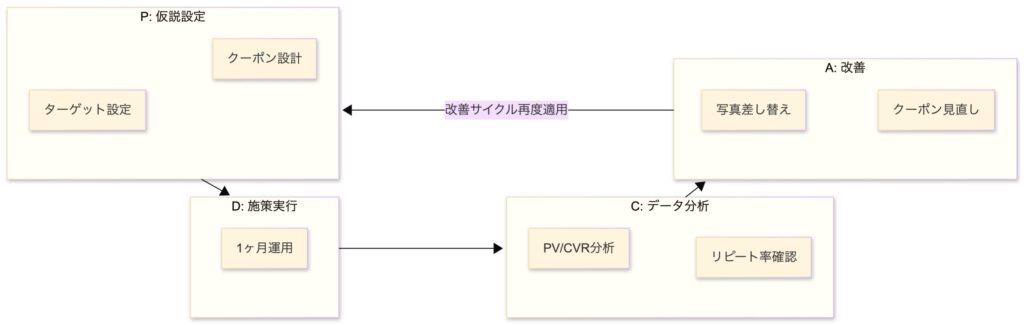 | Price(価格) | クーポン戦略 | 新規クーポン+リピータークーポンの2段構え |