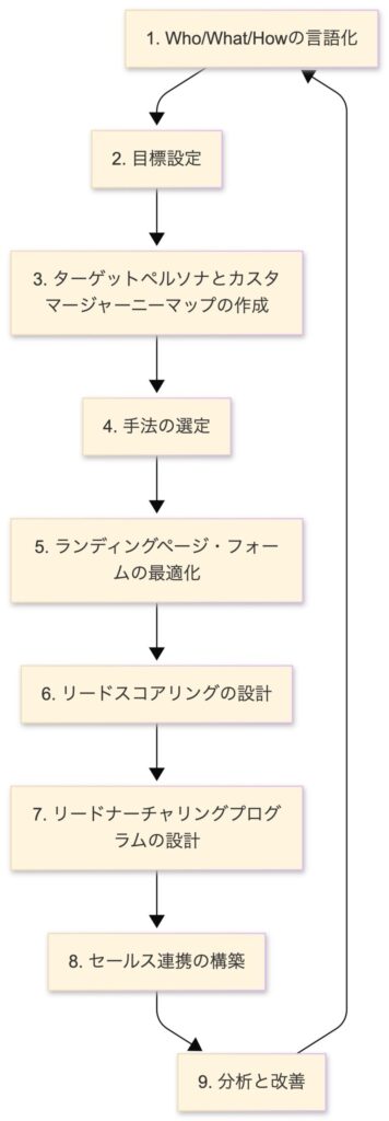 効果的なリードジェネレーション戦略を立案・実行するには、以下の9ステップを踏むことが重要です。