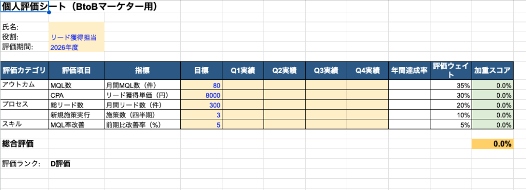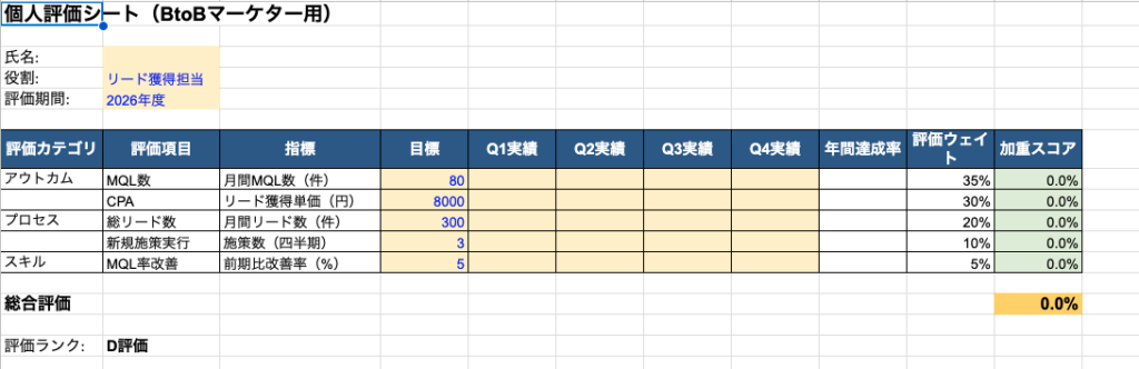 マーケティング組織の人事評価指標の最適解:BtoB・BtoC別の実践的KPI設計(Excel評価シート付き) - 勝手にマーケティング分析
