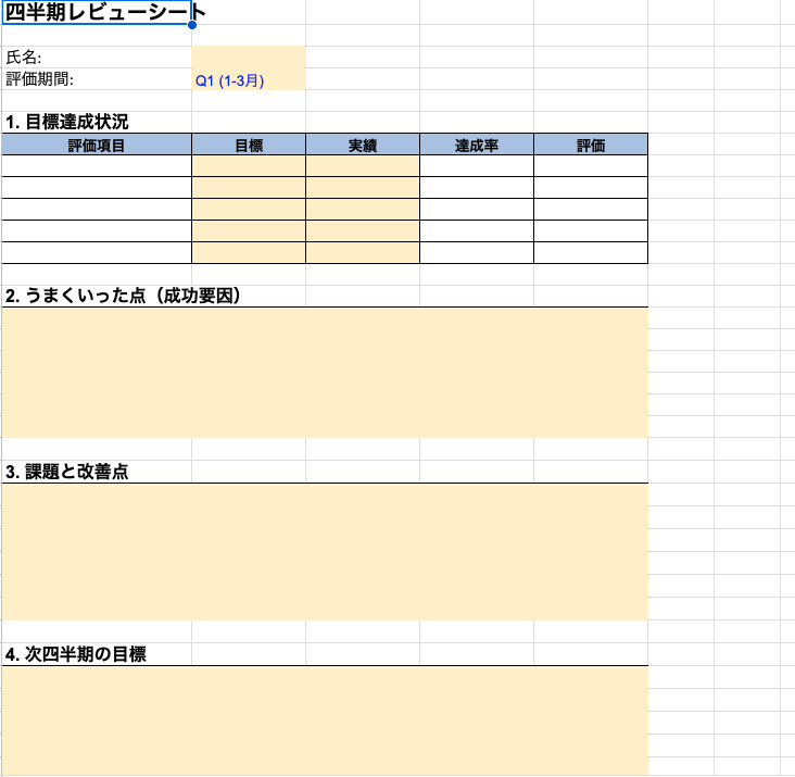 ④四半期レビューシート四半期ごとの振り返りと改善点記録