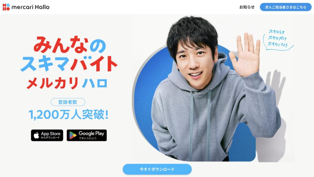 メルカリハロは2024年4月から手数料徴収を開始した比較的新しい事業です。スポットワーク(単発のアルバイト)市場に参入し、クルー(働き手)とパートナー(企業)をマッチングするサービスです。