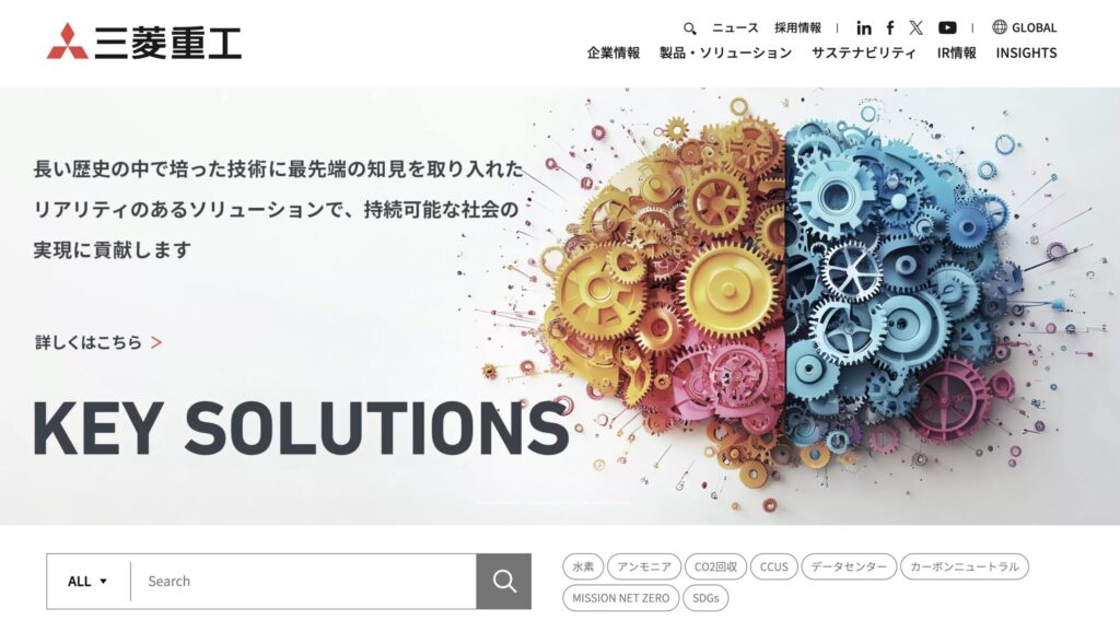 三菱重工業株式会社は、1884年に創業された日本を代表する総合重工業メーカーです。発電設備、航空機、防衛装備、産業機械、物流機器など、極めて幅広い事業領域を持ち、世界中で事業を展開しています。
