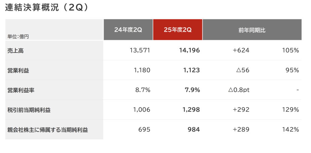 • 売上高:1兆4,196億円(前年同期比+4.8%)