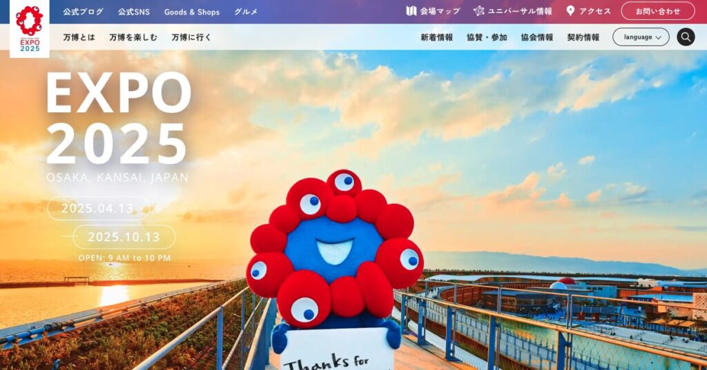 半年間の会期中に約2558万人が来場するという驚異的な集客力を見せ、公式キャラクター「ミャクミャク」のグッズも飛ぶように売れました。