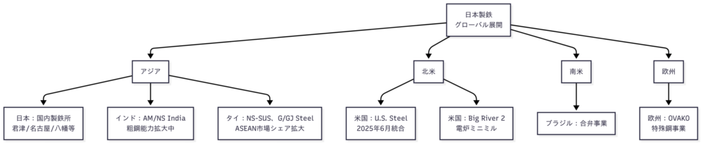 日本製鉄は、世界の主要市場に製造拠点を持ち、地域ごとの需要に対応しています。