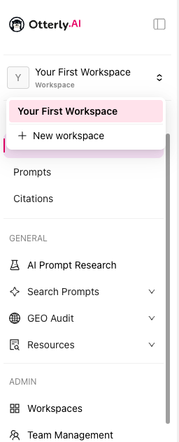 ワークスペース機能により、1つのOtterlyAIサブスクリプション内で複数のブランドとクライアントを管理できます。各ワークスペースには独自のチームメンバー、ブランドレポート、プロンプト、GEO監査があり、クライアントは関連データのみを表示できます。