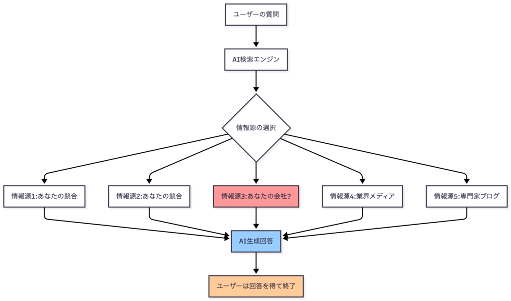 | ユーザー行動 | リンククリック→サイト訪問 | AI回答で完結(ゼロクリック) |