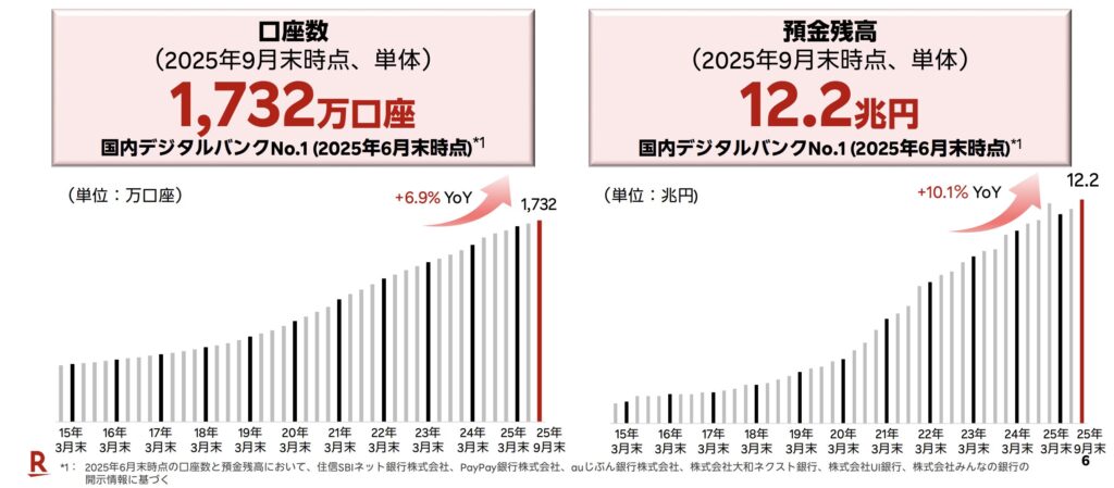 - 国内デジタルバンクNo.1の口座数(1,732万口座、2025年9月末時点)