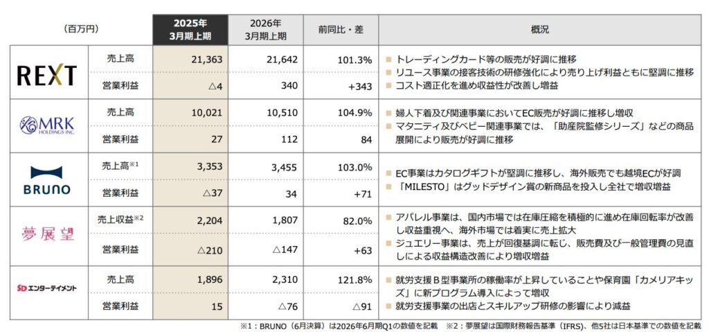 | 項目 | 2025年3月期上期 | 2026年3月期上期 | 前年同期比 |