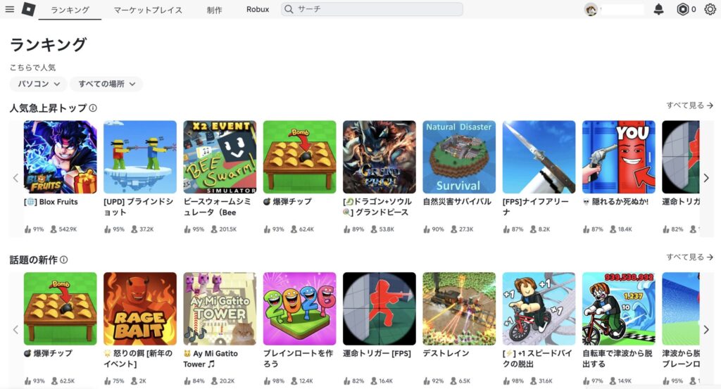 現在、プラットフォーム上には約5,000万以上のゲームが存在し、毎日何千もの新作が追加されています。ユーザーは好きなゲームを無料でプレイでき、クリエイターは自作ゲームから収益を得ることができます。