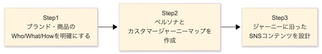 | Step3 | ジャーニーに沿ったSNSコンテンツを設計する | 具体的な投稿内容とプラットフォーム |
