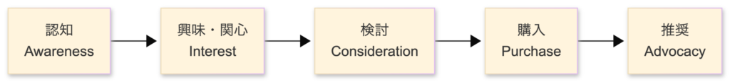 | 興味・関心 | 解決策を探し始めた | 「どんな方法があるんだろう」 | 解決策の選択肢、比較 | SNS、ブログ、YouTube |