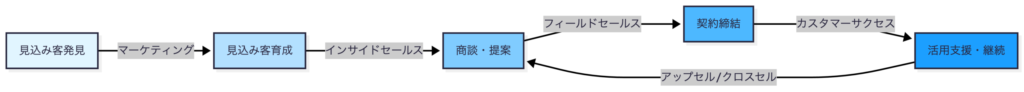 | カスタマーサクセス | 既存顧客の維持・拡大でLTVを最大化 | デジタルタッチ(メール、ウェビナー)と人的サポートを使い分け |