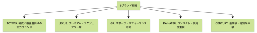 トヨタは2025年に5ブランド戦略を明確化しました。それぞれのブランドが明確な役割を持っています。
