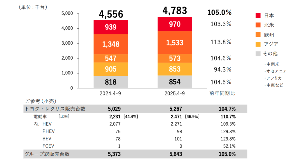 特にHEVの成長率が+9.3%と堅調なのは、「電動化したいけど充電インフラが心配」という顧客の不安を解消できる商品だからです。また、BEVやPHEVも約30%成長しており、「全方位での電動化戦略」が功を奏していることがわかります。