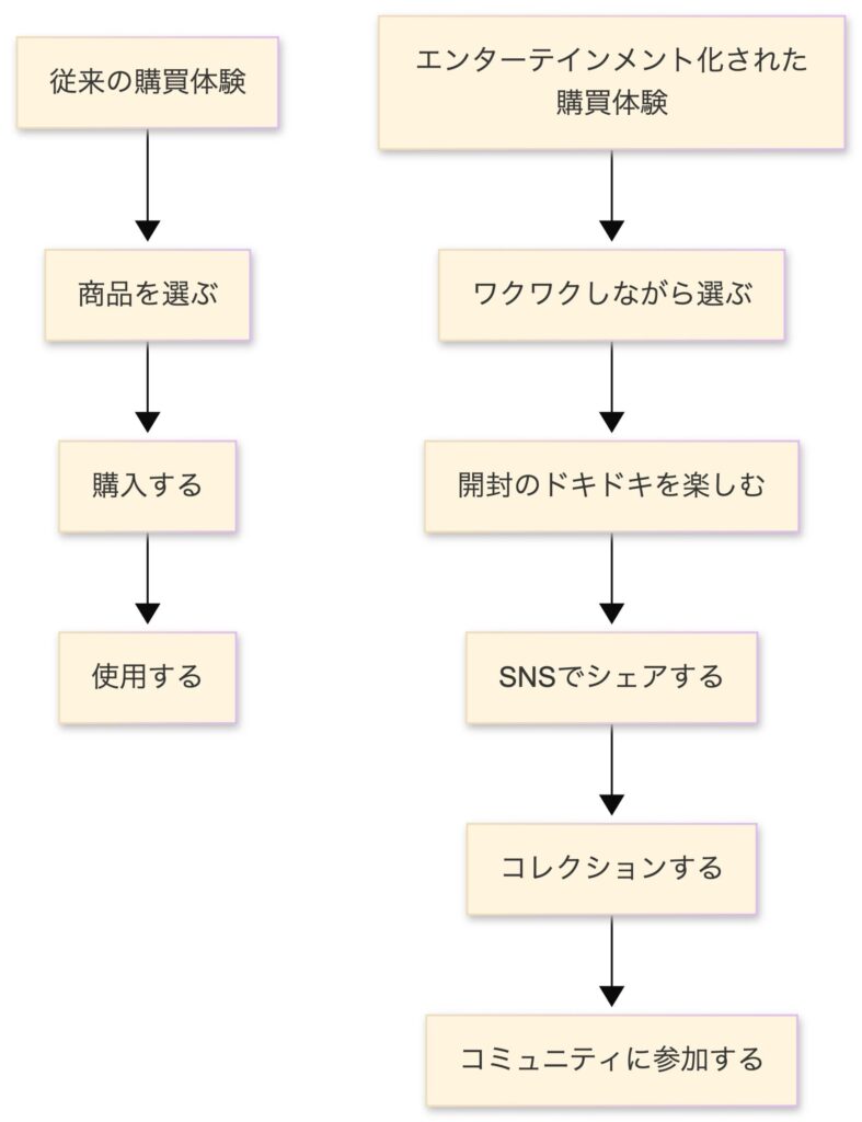 ブラインドボックスの成功が示すように、「何を買うか」だけでなく「どう買うか」も重要な価値提供要素になっています。